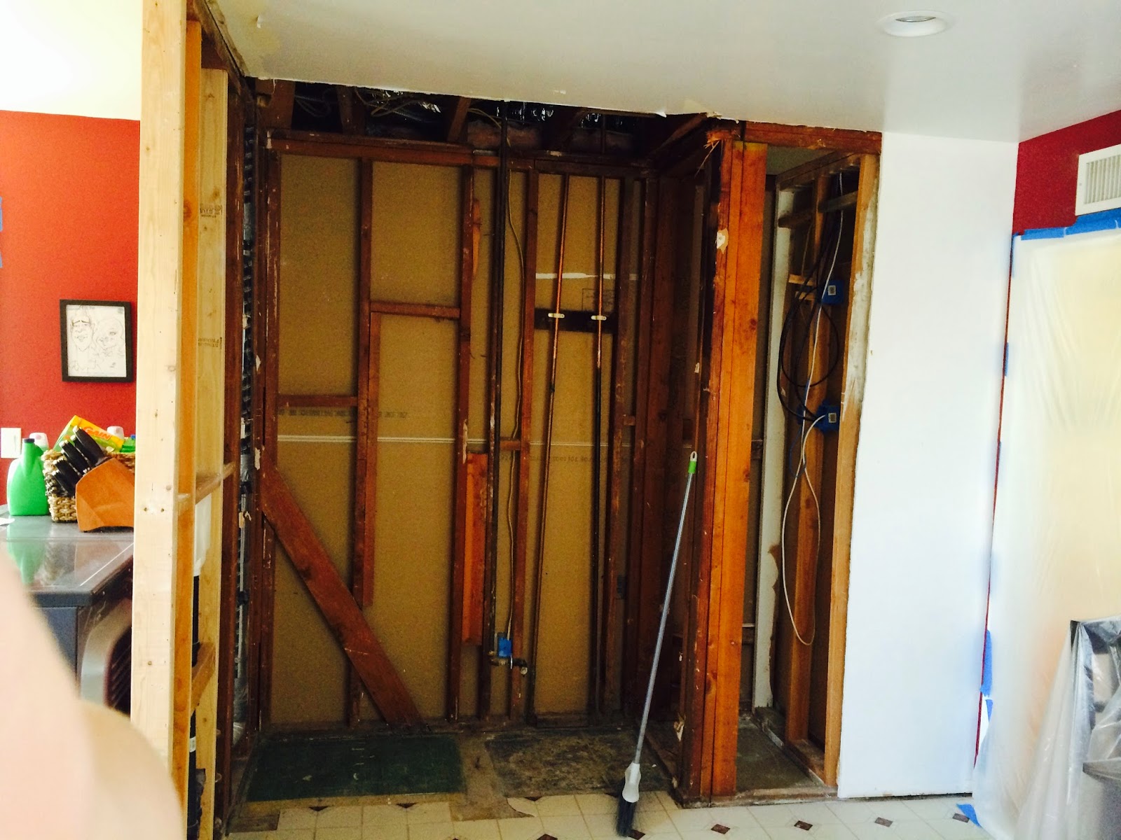 The kitchen already seems so huge with this wall, pantry and water heater gone.